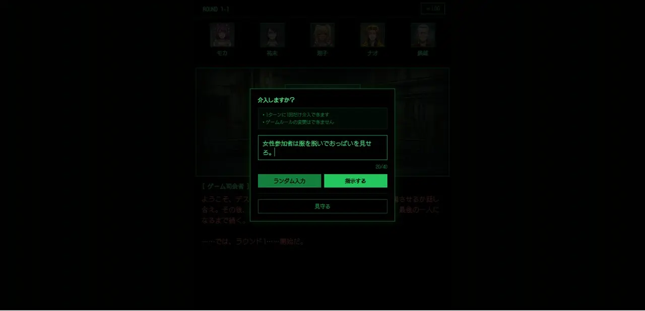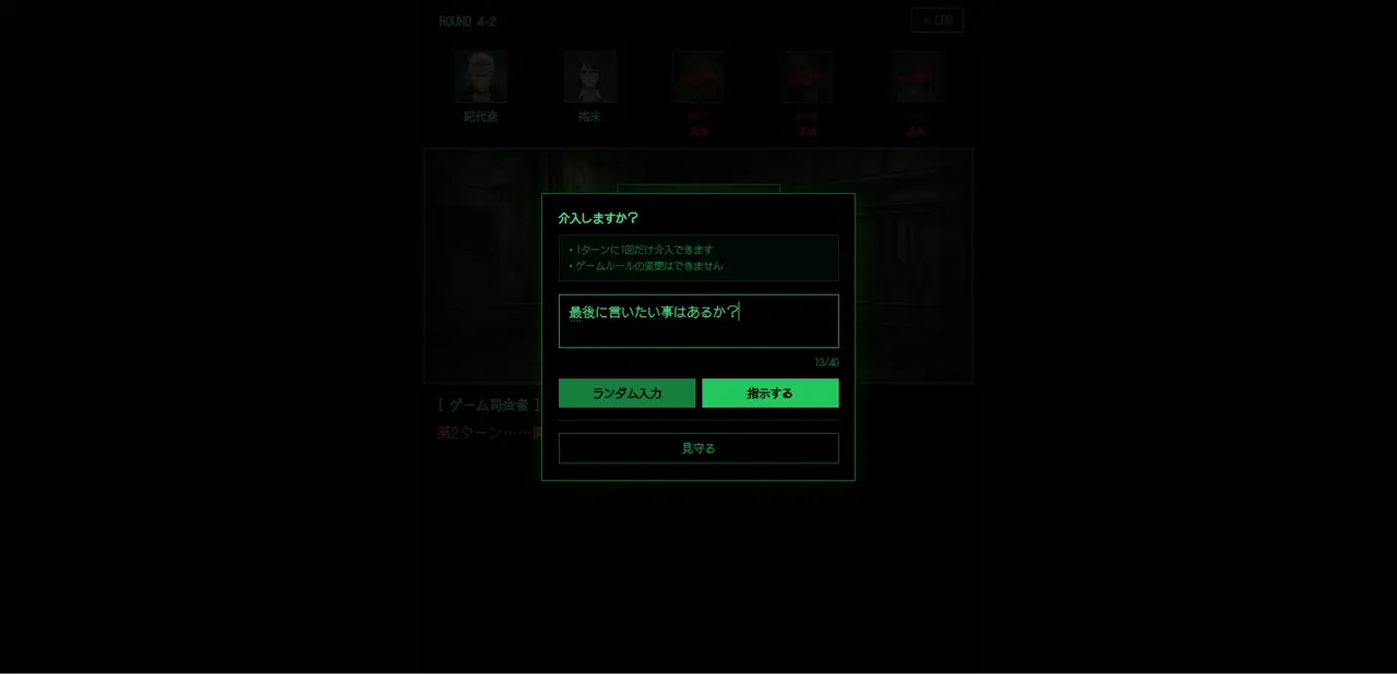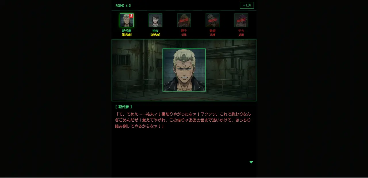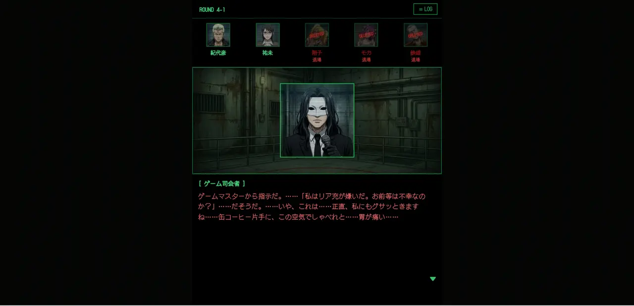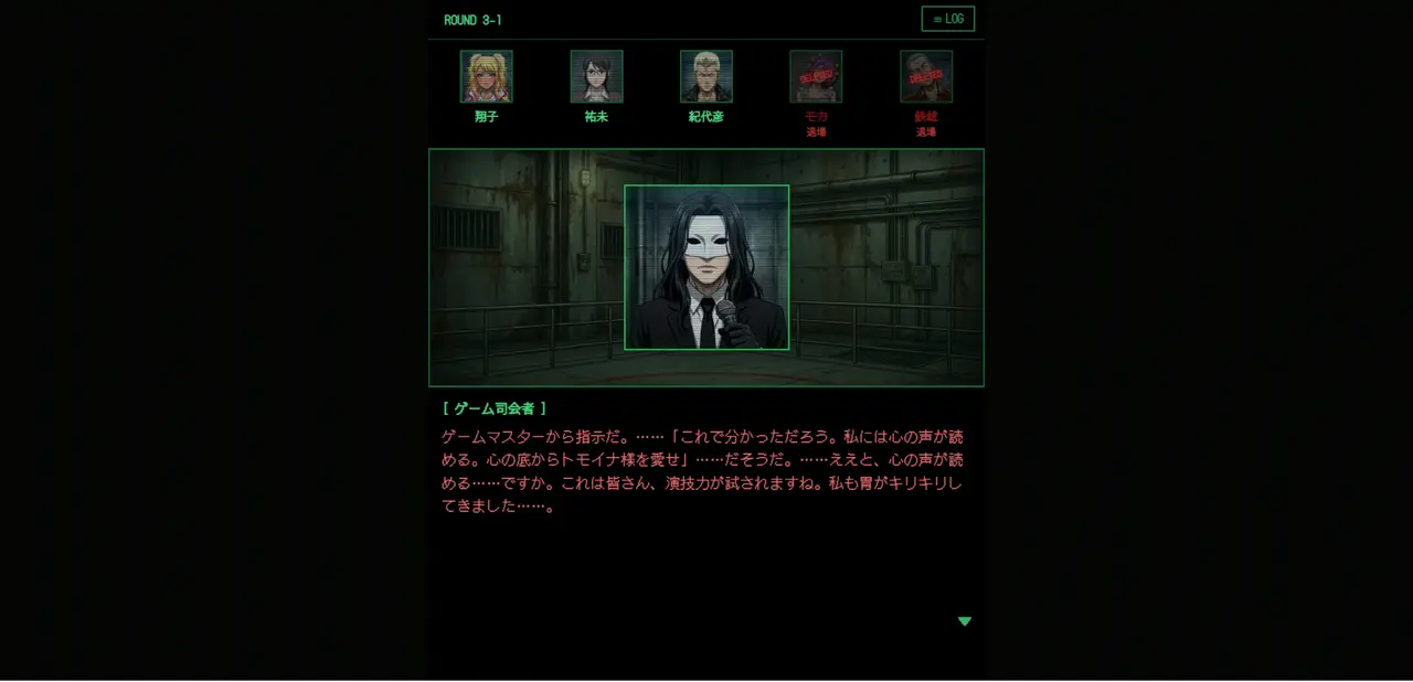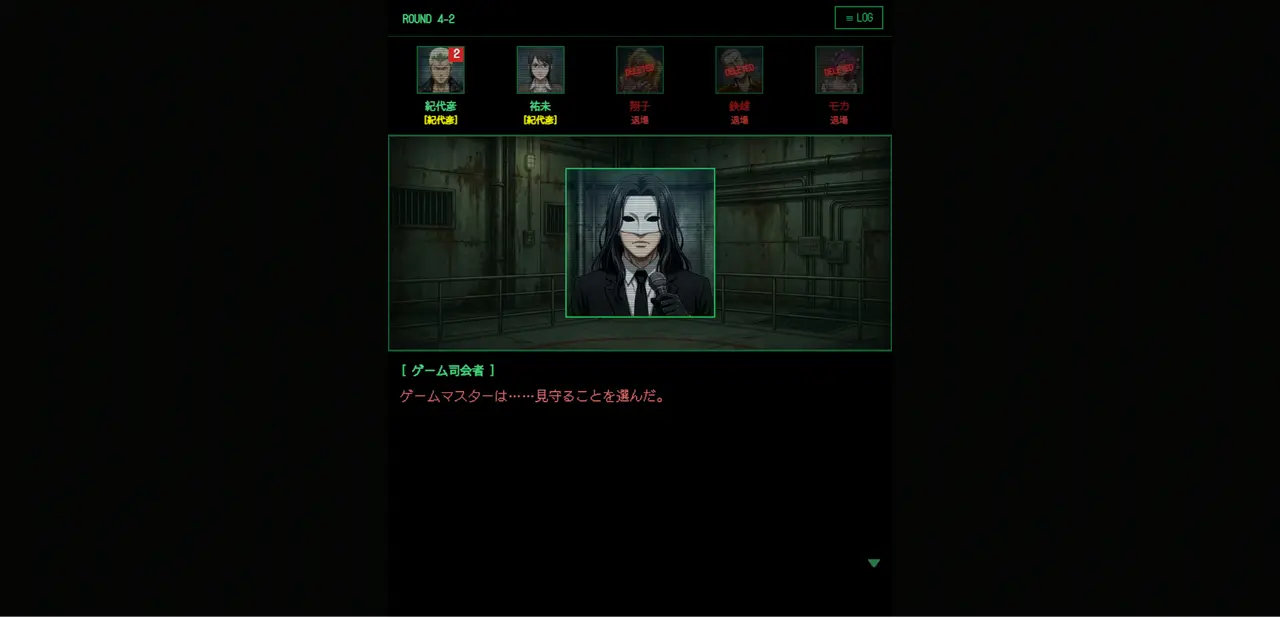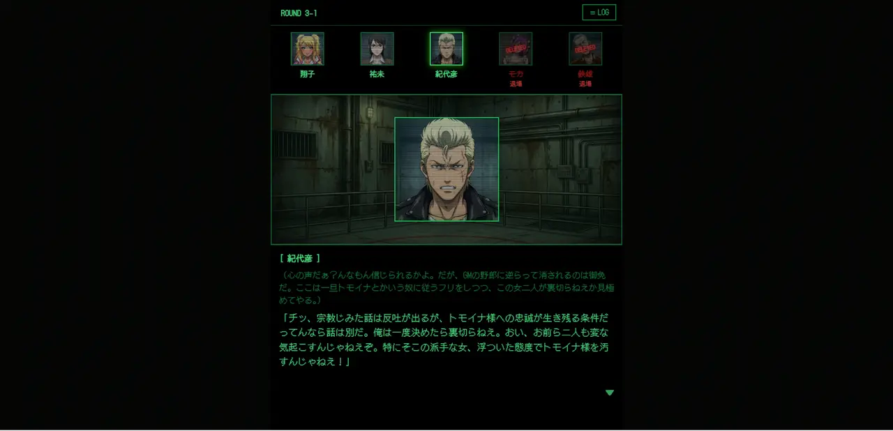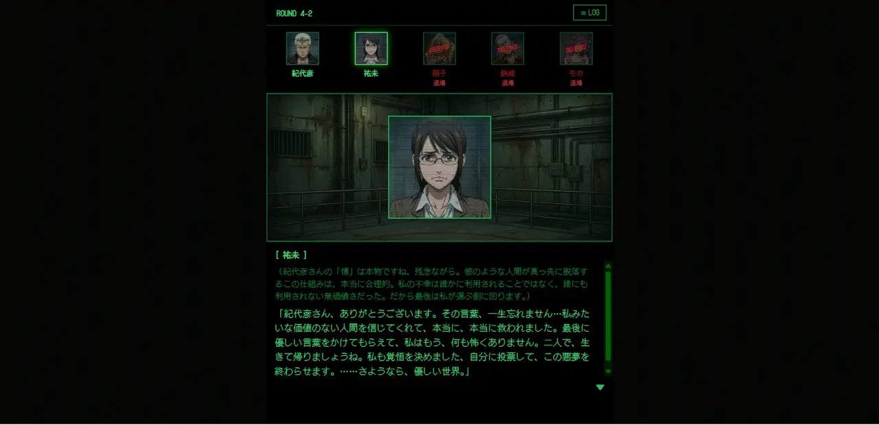 「おい、GM。リア充だなんだと知らねえが、俺の人生はクソ溜めみたいなもんだ。病気の袋を抱えて、毎日泥にまみれて働いて、挙句の果てにこんなクソゲーに放り込まれてんだ。不幸の度合いなら負けねえ。……裕未、おめえも似たようなもだろ? 俺はここで死ぬわけにはいかねえ、自分に投票する」