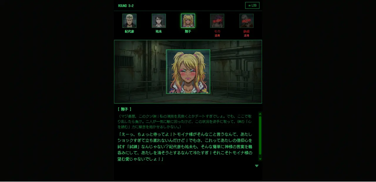 「おいおい、今の聞いたか? トモイナ様は全部お見通しってわけだ。翔子、テメェ調子乗って媚び売ってたのがバレちまったな。俺は裏切りや嘘が一番嫌いなんだよ。悪いが、神様に睨まれた奴と一緒に地獄へ落ちる気はねえ。次はテメェに投票させてもらうぜ」