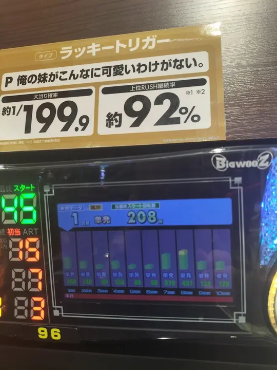 例えばこの台は1/199で大当たりします。